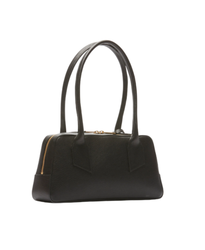 La borsa Malibu è realizzata in pelle nera di alta qualità. Caratterizzata da una silhouette rettangolare con angoli delicatamente stondati, è dotata di manici lunghi ideali per essere portata comodamente sulla spalla. La chiusura è assicurata da una zip in metallo dorato, che unisce funzionalità e stile raffinato.