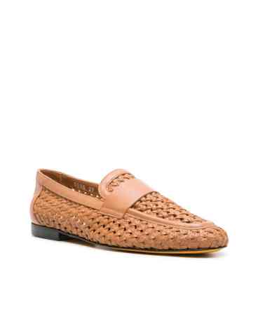 Mocassino Pelle Intrecciata Traforata Cuoio