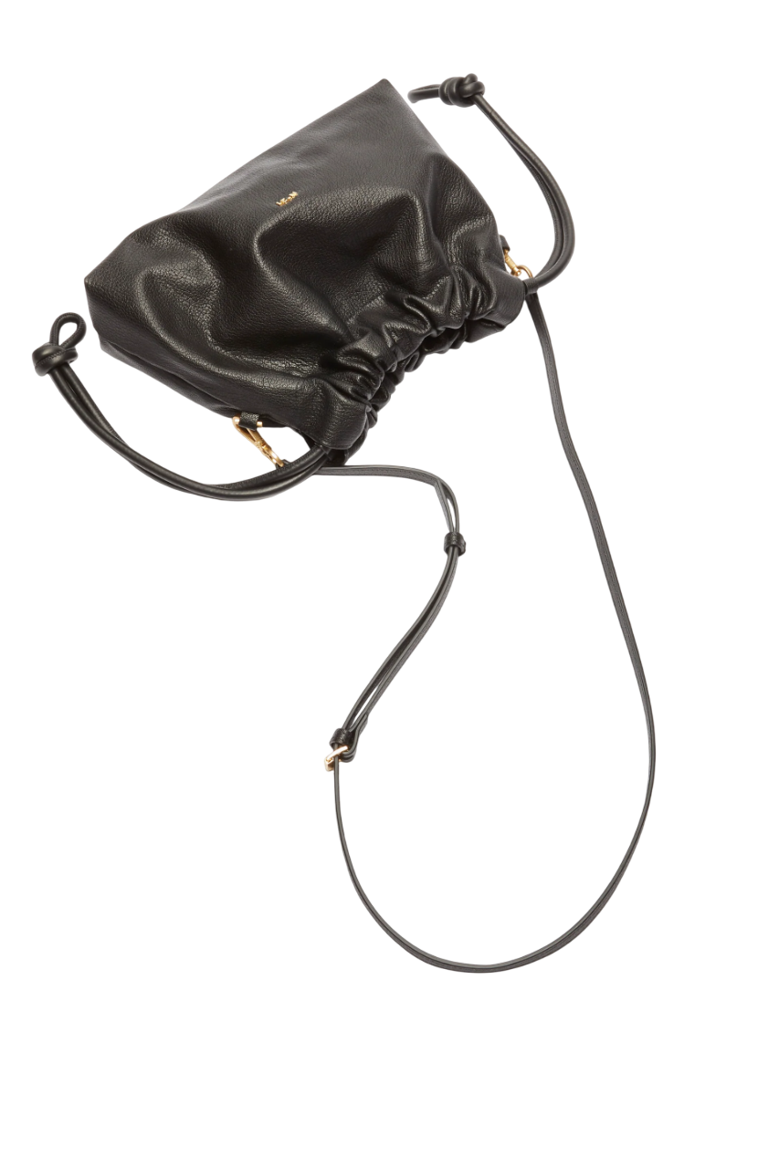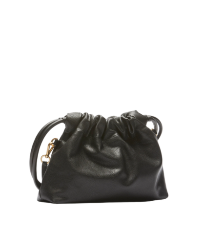 La pochette Eva, realizzata in pelle nera, presenta un design morbido e versatile. È dotata di una chiusura combinata con coulisse e bottone magnetico, che garantisce sicurezza e praticità d’uso. La tracolla è rimovibile e regolabile, permettendo di indossarla in diversi modi secondo le esigenze.