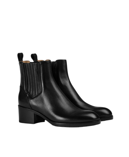 Questo stivaletto in pelle nera unisce eleganza e funzionalità con una tomaia ispirata al modello Beatles e pratici elastici laterali. La suola in cuoio, dotata di mezza piantina in gomma e tacco largo di 40 mm, assicura comfort e stabilità. La lavorazione Cemented offre una resistenza superiore con fondo incollato. Realizzato artigianalmente in Italia, è la scelta ideale per chi cerca una calzatura raffinata e durevole.