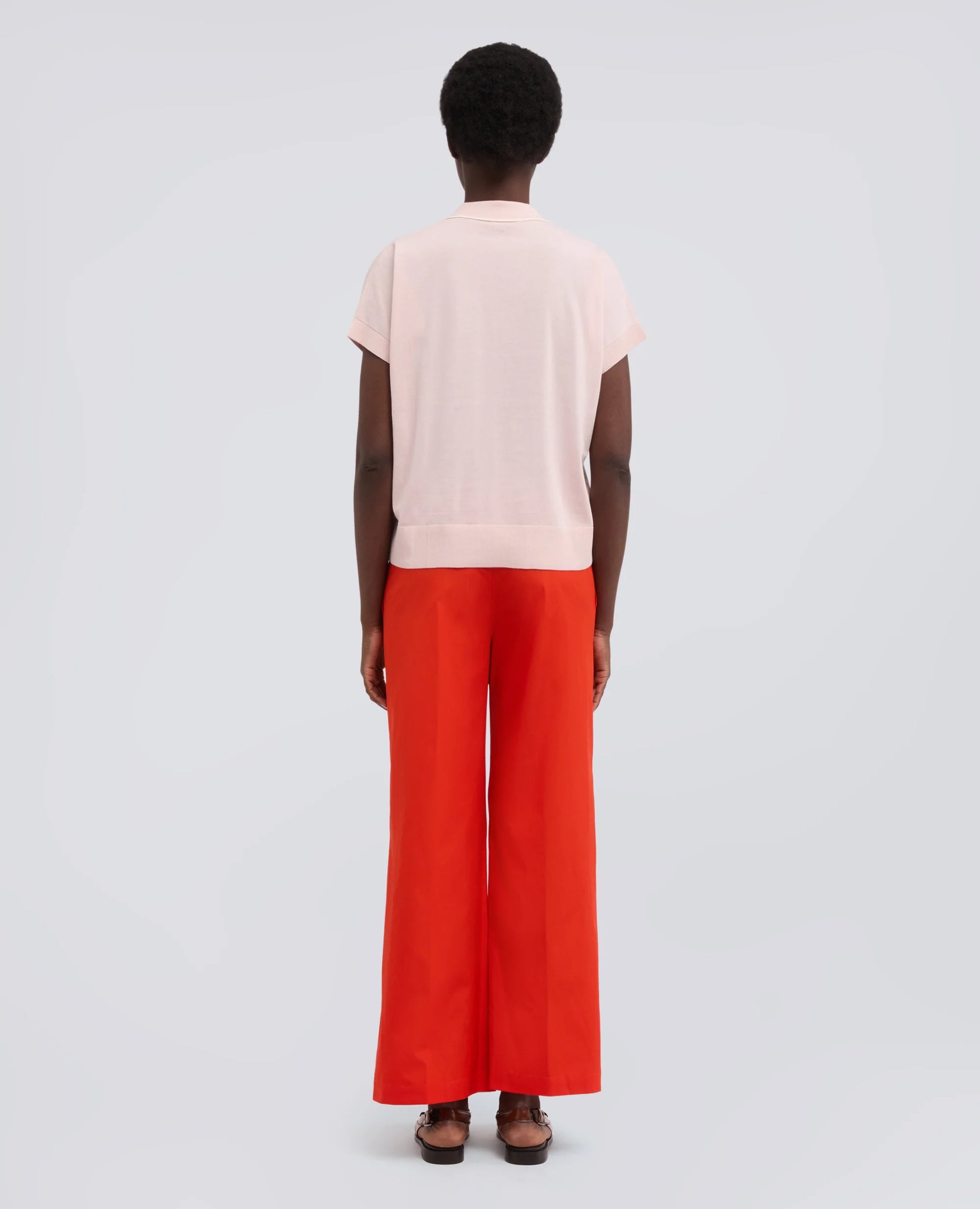 Maglia in puro cotone con scollo a V elegante e colletto rifinito. Le maniche corte scese garantiscono una silhouette moderna e rilassata, perfetta per chi ricerca comfort senza compromessi. La vestibilità ampia consente libertà di movimento e si adatta a diverse morfologie, rendendola un capo versatile per la stagione calda. Ideale da indossare da sola o stratificata, questa t-shirt combina semplicità e raffinatezza in un'unica proposta.