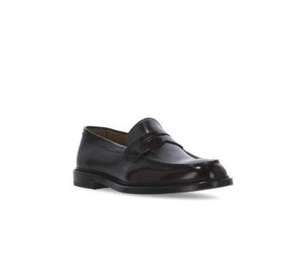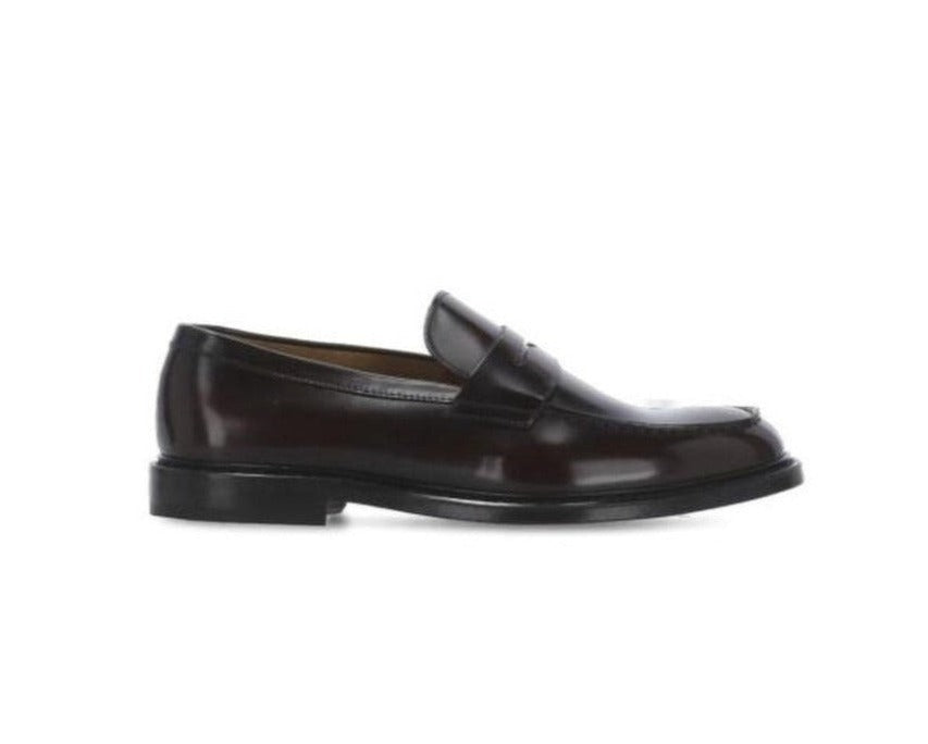 Mocassino penny dal design classico e raffinato, realizzato in pelle testa di moro con fondo cuoio. Perfetto per un look elegante e sofisticato.