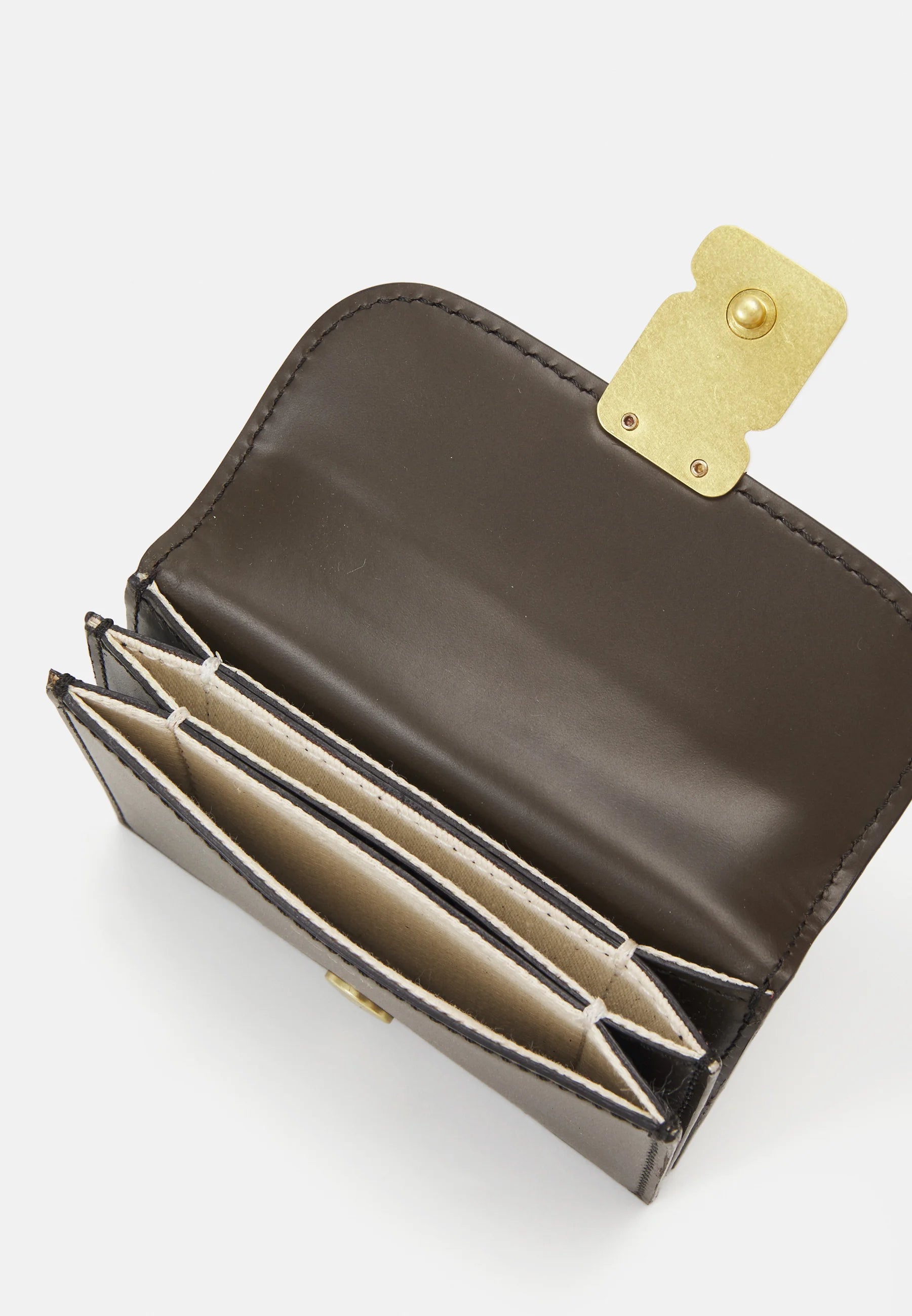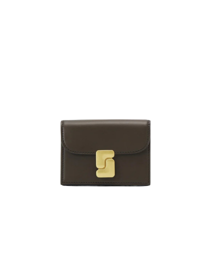 Il portacarte AUBE unisce design compatto e funzionalità. Realizzato in pelle marrone smaltata con finiture dorate e cuciture a mano, ideale per le borse più piccole. Offre tre scomparti a soffietto e si chiude con un pratico bottone automatico. Il monogramma "S" sottolinea l’esclusività di questo accessorio in pelle certificata LWG, ideale per organizzare carte e monete con stile e rigore.
