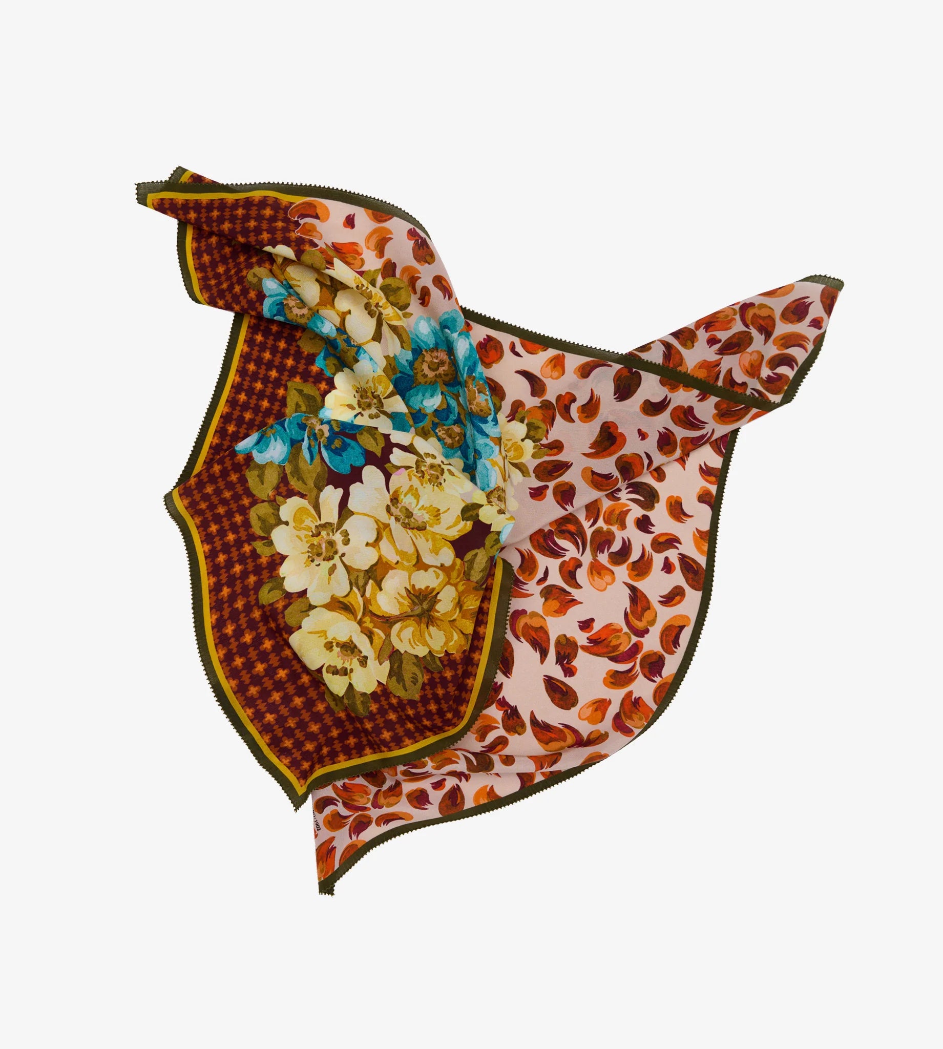 Foulard quadrato 70x70 cm confezionato in pregiato crêpe di seta, caratterizzato da un raffinato orlo demi-à-jour che ne esalta l'eleganza. Questo accessorio versatile si distingue per la sua capacità di adattarsi a molteplici stili: indossabile al collo, come bandana, cintura o dettaglio decorativo per borse. La qualità della seta garantisce una caduta morbida e una sensazione di lusso, mentre il formato compatto lo rende ideale per l'uso quotidiano e per completare qualsiasi look.
